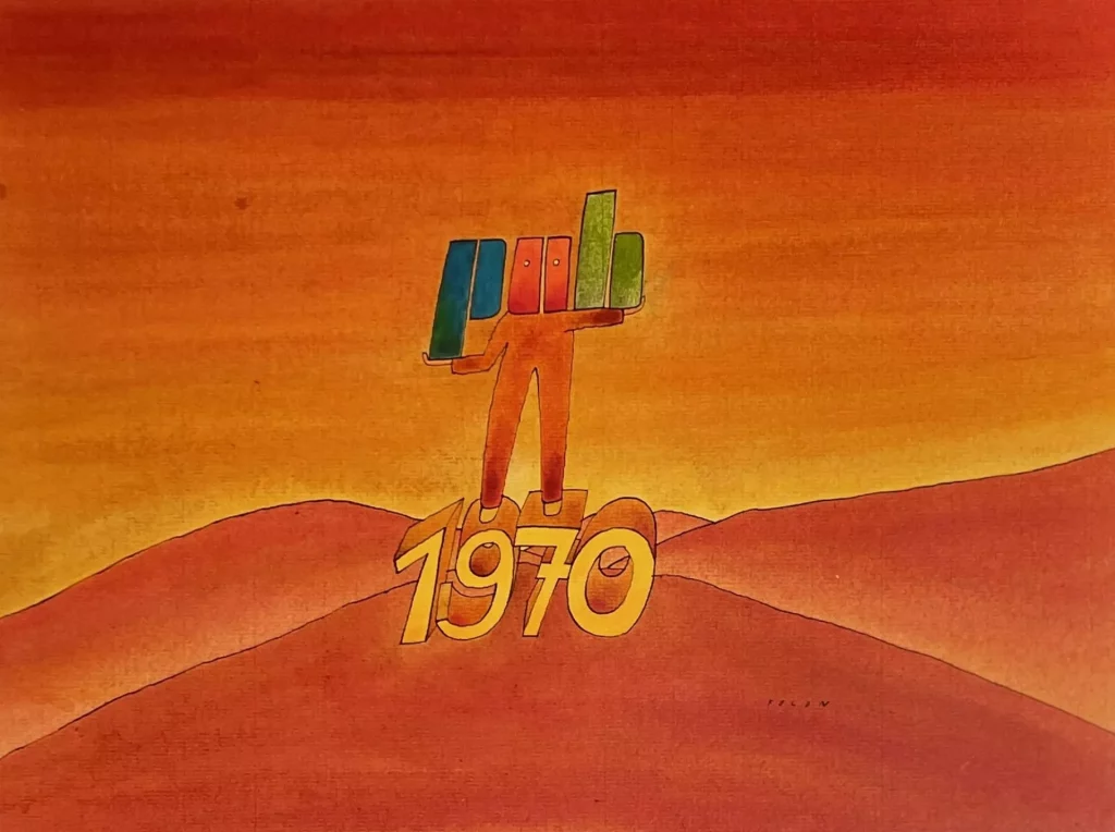 Commande faite à l’artiste en 1969, pour une carte de vœux de fin d’année et pour un dépliant de prospection commerciale par le père de l’actuel propriétaire.