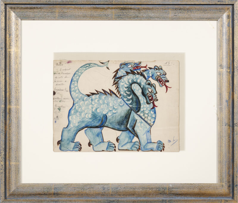 Perazzone-Brun > Ventes futures > Bova. Le serpent près de l’escalier du côté de la scène à droite, projet de décor pour le Ballet « Bova Korolevitch», légende tirée de la série des Contes russes, mise en scène en 1916 pour les Ballets russes de Diaghilev.
