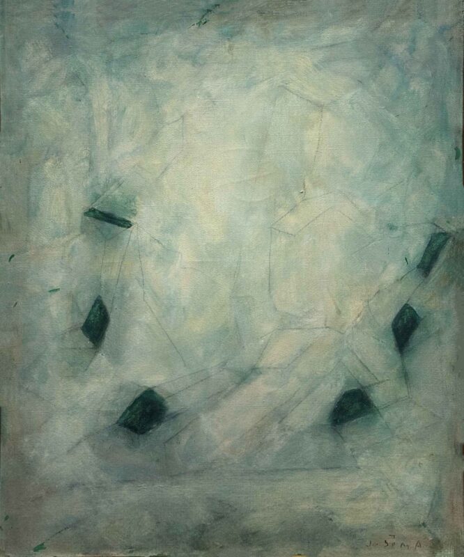 Huile sur toile signée en bas à droite, titrée au dos avec la lettre F.