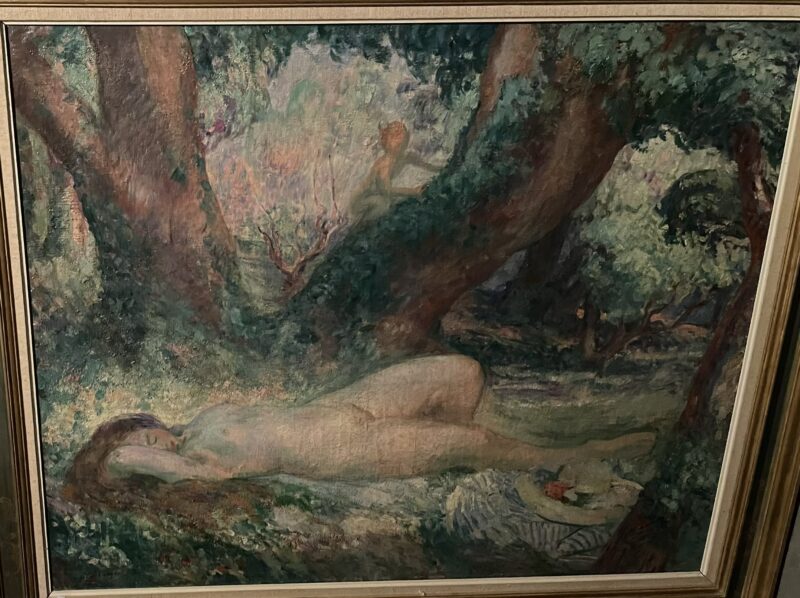 - La sieste à Saint Tropez, 1906 89 x 116 cm, une toile de 1906 ou figure la même jeune femme allongée dans une déor meditérranéen.