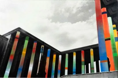 Gouache et technique mixte sur photo en noir et blanc signée et datée 1974 en bas à droite.